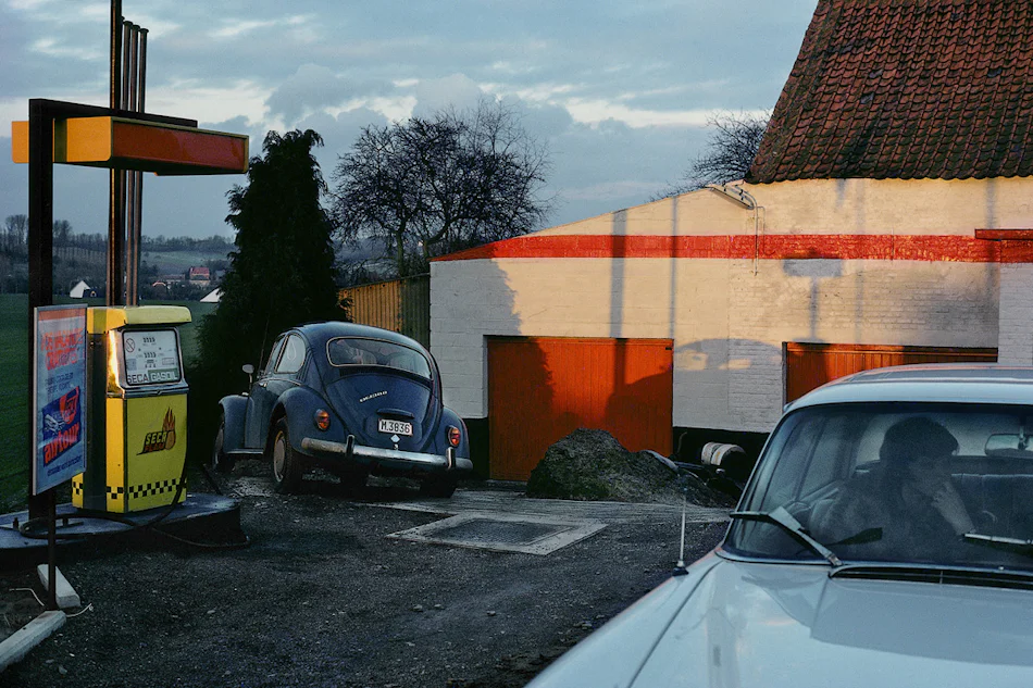 Originally dreaming of becoming a film director, Harry Gruyaert studied at the School of Film and Photography in Brussels from 1959 to 1962. Shortly after he left Belgium at the age of 21, fleeing the strict catholic environment in which he was raised. Gruyaert travelled extensively across Europe, North Africa, Asia and the United States and lived in cities with a vibrant film and photography scene like Paris and London. During his first trip to New York in 1968, he discovered Pop artists like Roy Lichtenstein and Robert Rauschenberg. This encounter made him appreciate the creative potential of colour and encouraged him to search for beauty in everyday elements for the rest of his career. Around the same time Gruyaert befriended the American artists Richard Nonas and Gordon Matta-Clark and photographed their work. Further inspired by the visual impulses on his first trip to Morocco in 1969, he decided in the second half of the 1970s as one of the first photographers in Europe to commit himself entirely to colour photography.