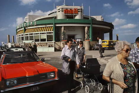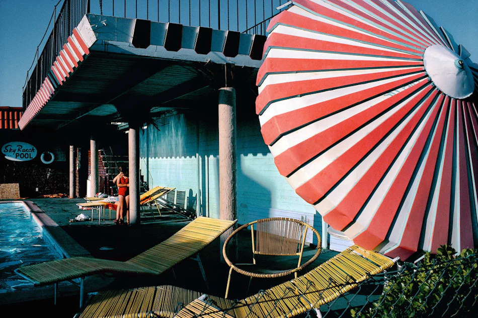 Gruyaert’s cinematographic background instilled in him an aesthetic conception of photography. Rather than telling stories or documenting the world through his lens, he searches for beauty in everyday elements. His images are simply snapshots of magical moments in which different visual elements, primarily colour, form, light and movement, spontaneously come together in front of his lens.
